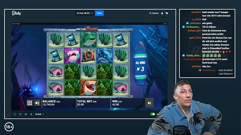 Wer den Twitch Live Chat beobachtet, der findet schnell heraus, dass sich der Rapper hin und wieder dazu verleiten lässt, den Empfehlungen seiner Zuschauer zu folgen. Insgesamt scheint sich Farid Bang auf Spielautomaten und Blackjack Versionen zu konzentrieren, die der Mehrheit der Stakefans ein Begriff sind.